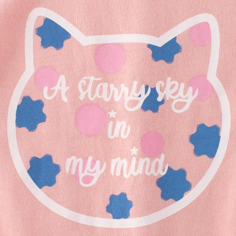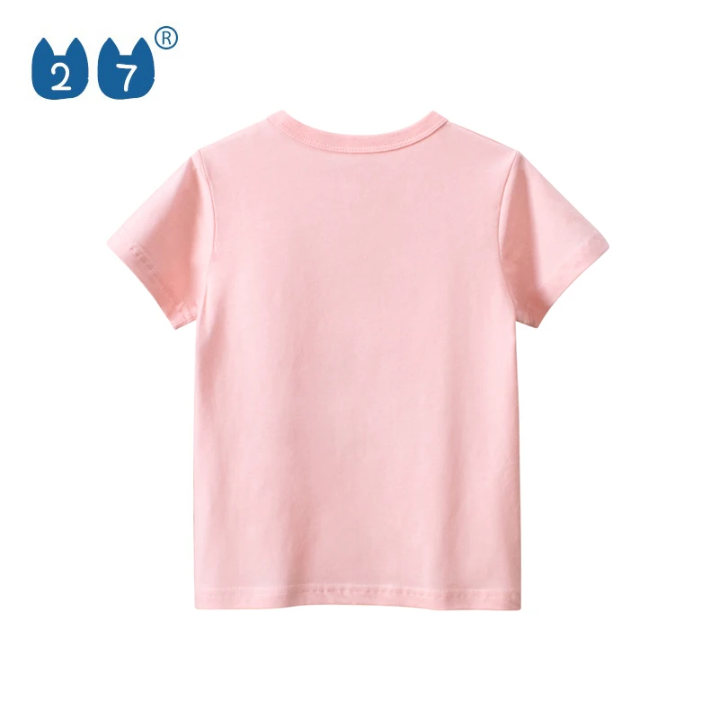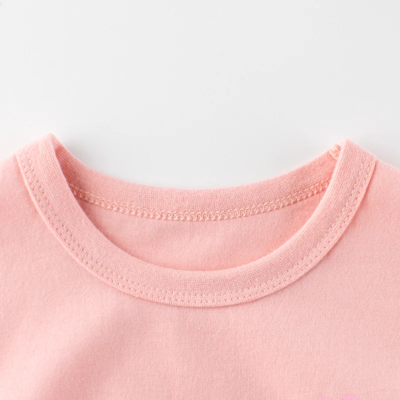 100% Cotton O-Neck Cartoon Pink Short Sleeve Cute Design Girls T Shirt